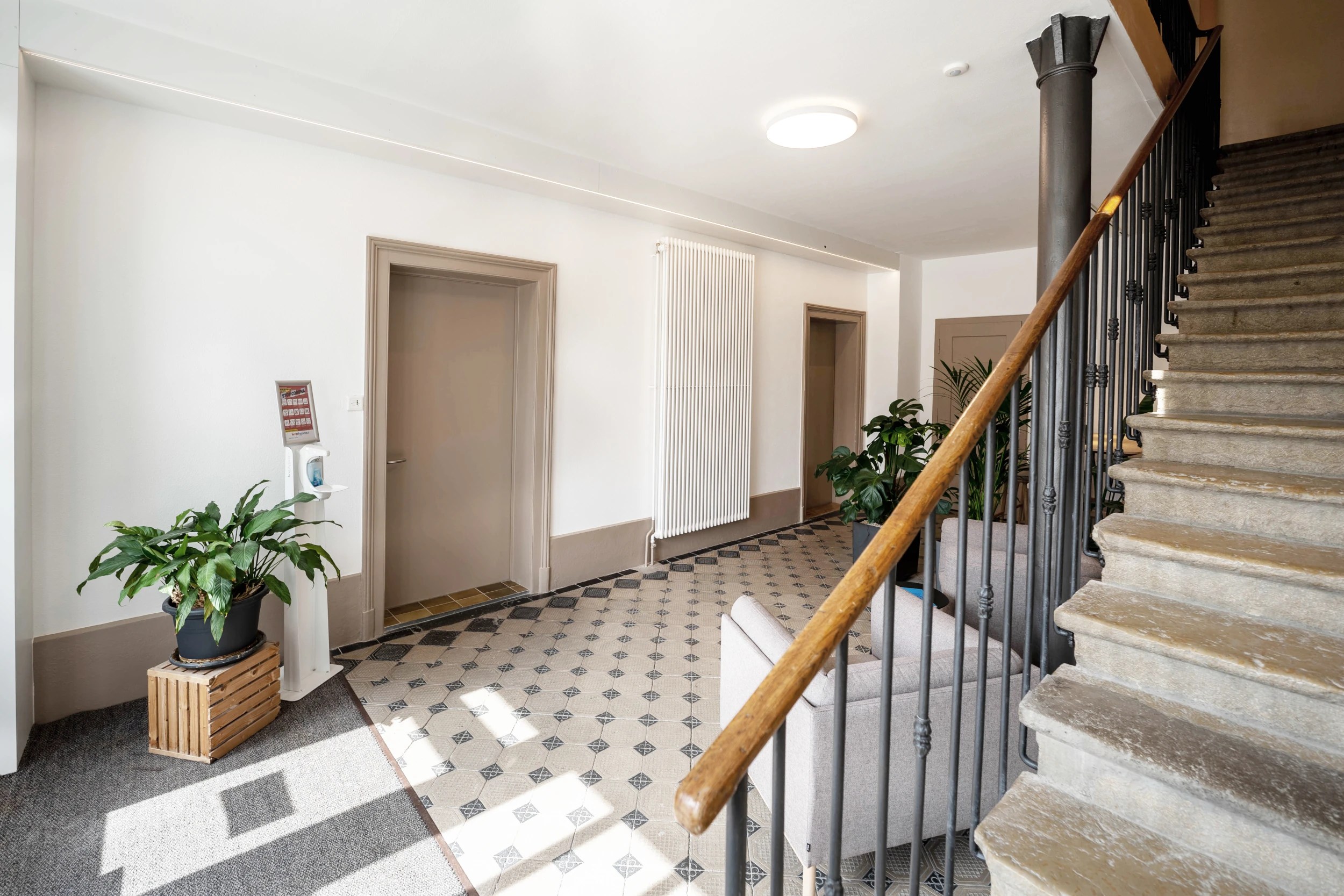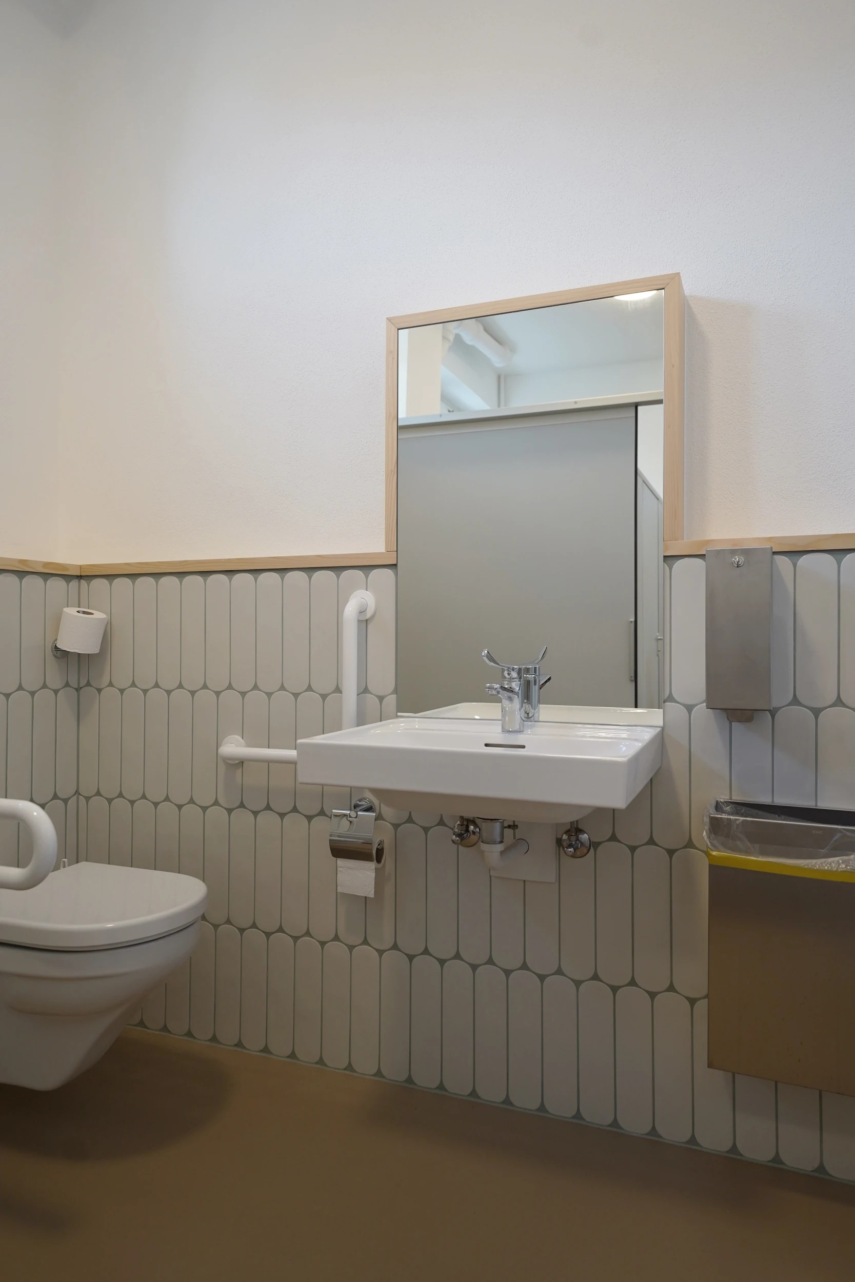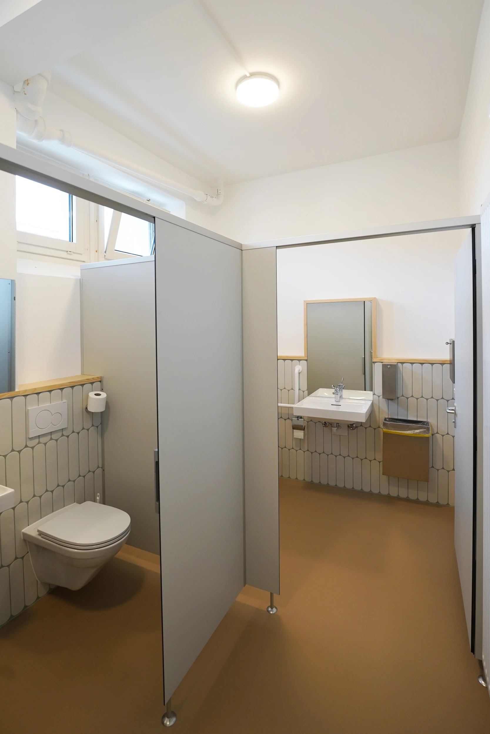 À l’intérieur, les espaces sanitaires du rez inférieur, utilisés par le corps des sapeurs-pompiers de la commune, ont été entièrement rafraîchis. Au rez supérieur, les WC destinés au personnel administratif ont également été remis à neuf. Un réaménagement de l’espace de pause a été réalisé dans le hall d’entrée afin d’offrir un lieu convivial au personnel communal.