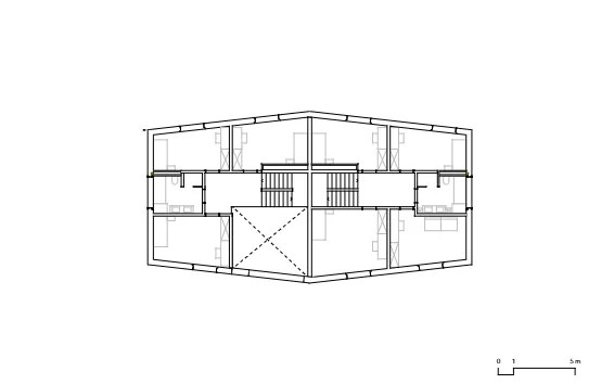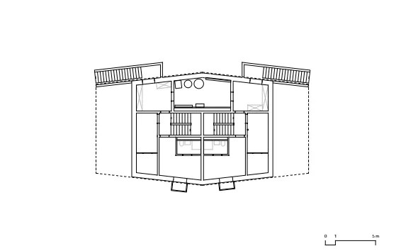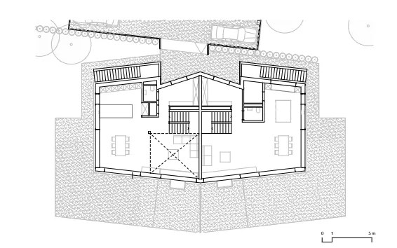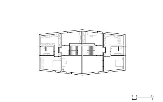 Chaque villa s’articule sur trois niveaux, avec de généreux espaces de vie baignés de lumière et ouverts sur l’extérieur. Les deux grandes façades sont volontairement pliées, créant une cassure qui limite les vis-à-vis et préserve l’intimité des terrasses. Les aménagements extérieurs renforcent cette séparation en délimitant subtilement les deux entités.